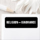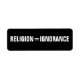 "religion = ignorance" Funny bumpersticker for atheists and people with a special sense of humour. You hate it if people use "it's in the bible" or something like that as if it would be an argument? Show everyone what you think about people who put belief above reason. It may also make a great gift for an atheist friend.