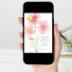 A pretty pink floral religious birthday card featuring a Bible scripture from Matthew 21:22 and decorated with soft pink cosmos flowers and a yellow moth visiting hand illustrated with pencil and watercolor. On the inside is another cosmos flower and light grey text that you can edit to fit your needs.