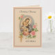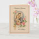 Featuring a beautiful religious image of the Blessed Virgin Mary with the Baby Jesus with pink roses. They are framed in the beads of the rosary.