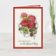 Featuring a beautiful traditional Catholic religious image of vintage red roses with the holy rosary. Inside is the Blessed Virgin Mary with red roses. A scripture verse is on the inside. All text and fonts may be modified to suit the occasion and recipient.