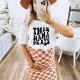 The material is a great quality that is hard to find with most tee shirts. Fabric was not see-through or thin at all, but was also very soft and comfortable. The shirt description states that it runs a little small, so I sized up one size for a perfect fit! I would definitely buy this type of tee shirt again because I love the fit and high quality fabric that I cannot find anywhere else. The printing was perfect and just as pictured. Loved the cute quote and really enjoy the tee in both the quality and design. I love quirky typography designs and funny quotes and I am extremely pleased with the overall quality and value I get at Zazzle!