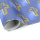 Religious Christian Golden Cross Lilac Blue Easter Wrapping Paper