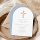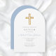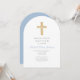 Religious Cross Baby Blue Script Boy Baptism Arch Invitation