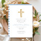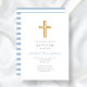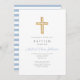 Religious Cross Baby Blue Script Boy Baptism Invitation