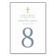 Custom Religious Cross Blue Boy First Communion Table Number. Part of the Dusty Blue Script Cross Boy First Communion Suite with matching invitation, stationery and first communion party accessories.