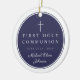 Personalized Religious Cross Boy First Communion Photo Ceramic Ornament. Part of the Modern Navy Blue Boy First Communion Suite with matching stationery and party accessories available.