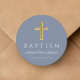 Religious Cross Dusty Blue Boy Baptism Classic Round Sticker