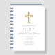 Religious Cross Dusty Blue Stripes Boy Baptism Invitation