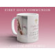 Personalized Religious Cross Girl First Communion Photo Coffee Mug. Personalize it with the girl's name and first communion details and change the template photos with one or two different of your favorite photos of this special day. A great keepsake gift for family and friends.