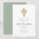 Religious Cross Sage Green Floral Wreath Baptism Invitation