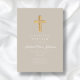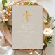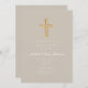 Religious Cross Taupe Script Boy Baptism Invitation