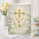 Featuring a beautiful traditional prayer offered during the Lenten Season before Easter during the Stations of the Cross. This text is on a vintage background of lilies with and image of the cross and the Holy Spirit. The inside also includes a cross and floral design with a scripture verse.