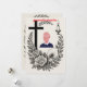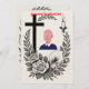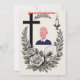 Elegant, text-free black and white funeral invitation featuring Christian symbols like the cross, candle, and floral wreath — ideal for traditional memorial services.