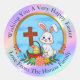 Religious Happy Easter, Bunny with Cross & Egg Classic Round Sticker