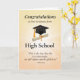 Celebrate a high school graduation with a faith-centered design that reflects gratitude and joyful confidence. A radiant golden starburst surrounds a traditional black cap and rolled diploma, symbolizing dedication, perseverance, and the bright future ahead. Psalm 118:24 anchors this milestone in thanksgiving, reminding the graduate to rejoice in the day the Lord has made. Warm golden tones and classic imagery give this design a timeless keepsake quality, offering heartfelt congratulations and spiritual encouragement as a new chapter begins.