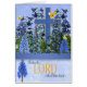 Proverbs 3:5 “Trust in the LORD with all thine heart; and lean not unto thine own understanding.” A beautiful Christian cross sits in a blue garden of larkspur flowers with hints of golden yellow in visiting birds and butterflies on this encouragement greeting card with a religious theme.