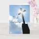 Original color photograph with a silhouette of a church cross with shining star effect standing bright against the blue sky with white clouds. "With Sympathy" script is written on the front and " Your Text Here" is on the inside to easily customize or delete to hand write your message later. A beautiful, inspiring, thoughtful and symbolic religious greeting card to show you care.
