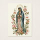 Showcasing a lovely religious image of the Blessed Virgin Mary, Our Lady of Guadalupe with pink flowers. All text and fonts are in Spanish and can be personalized. The prayer featured is the Hail Mary in Spanish."