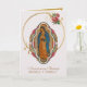 This religious anniversary card has a custom designed image of the Virgin Mary, Our Lady of Guadalupe with pink roses and decorative gold frame. Inside is a scripture verse and congratulatory verse which may be modified.