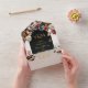 We absolutely loved how these wedding invitations turned out! We went with the standard paper stock, and it is plenty thick. One thing we probably would have changed is not doing the big white block on the front for the recipient address. Our invitations are a dark green. When we went to Staples to look at the options for labels, we saw some cute kraft stock colored ones that would have looked really cute on the dark green rather than using matte clear labels within the white block if that makes sense. They are still adorable though. I just fancied up my matte labels with a little leafy design and pretty font for the names so I feel like it helped it look more cohesive. Also, if you’re worried that they look pricey, make sure to put your quantity in because the price goes down significantly. We found this to be a super affordable, efficient and unique option that checked all of our boxes. When folded, they are the size of a little Google home screen see pictures. Perfect! Colors look exactly as we expected and the printing quality is clear and consistent.