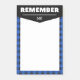 Cool notepad with a blue buffalo check background, and "remember" written in bold white letters. Personalize with your initials.