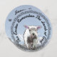 This greeting card features a digital depiction of a lamb displayed over a photo of clouds in a blue sky. A floral border encircles the round. The words, "This Easter Remember the Lamb of God," curves around the top half of the round.