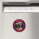 Well Designed High Quality Magnet. Colors are Vibrant Clear Excellent good size Diameter Circumference Fonts Red Folio Bold Clover Green Outline Puffy White Interior Image