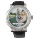 Remember a loved pet by having its photo and name on a stylish wristwatch. Change the photo to show your own dog or cat. Change the wording to the name of your pet.