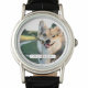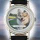 Remember a loved pet by having its photo and name on a stylish wristwatch. Change the photo to show your own dog or cat. Change the wording to the name of your pet.