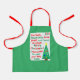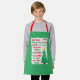 Great color and even though I ordered the kid size, it covers well enough to use during the holidays. I am not a big woman and prefer a shorter apron. I stand 5"6" and the length of the garment goes to mid-thigh. The tie straps fit well at my waist and even though there is no neck strap adjustment, the opening is plenty big enough. I am happy with the size and fit. I am sharing my apron with my 10 year old grandson, too! The color is vibrant and looks good, as shown on the website. The stitching looks strong and reinforced. Photographed is front side and back side of the apron, reinforced straps and coloring. My phone camera may not be the best at showing the details.