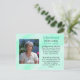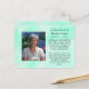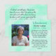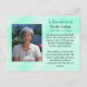 A card to hand out at funerals, memorials or celebrations of life. Personalized photo, text and prayer on the back which can all be customized. And if you have to buy these, I just want to say, sorry for your loss. Prayer card. Teal background and prayer hands on back.