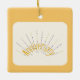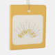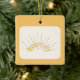 This design is featuring "Anniversary" in colors of yellow and black spikes. Tiny hearts as spikes. A golden backround represents a golden anniversary. A white feathered opaque is inserted in the center of the ornament. This ornament will make a beautiful gift to your loved one for 50 years of marriage. These are available in assorted shapes. Customize with your own information on the back of the ornament.