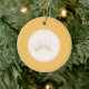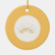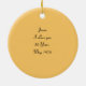 This design is featuring "Anniversary" in colors of yellow and black spikes. Tiny hearts as spikes. A golden backround represents a golden anniversary. A white feathered opaque is inserted in the center of the ornament. This ornament will make a beautiful gift to your loved one for 50 years of marriage. These are available in assorted shapes. Customize with your own information on the back of the ornament.