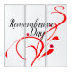 This elegant design features a rich red background with an artistic design and red poppies gracefully floating around. In bold black cursive writing, 'Remembrance Day' takes center stage. It's a poignant and stylish tribute to honor those who sacrificed for our freedom.
