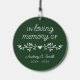 Remember your love one with this loverly wind chime in pine green with sympathy quote "In loving memory of" add name and date.