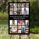 Personalized photo memorial foam board sign to display at someones funeral or wake. This remembrance display features a black background that can be changed to any color, 21 pictures, the saying "forever in our hearts", their name, and dates.