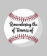 Description: An image of a white baseball with red stitching, featuring the text "Remembering the of Terroriss of" in a black cursive font. The design seems to aim for a memorial or remembrance theme, but the wording appears incomplete or misspelled, suggesting a need for correction or clarification.