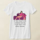 My overall review is that the T-shirt is nice, it fits true to size however the font is significantly smaller than advertised and you can't read it. The printing is unreadable and there is a strain to read it. It does not look like the advertised product. Maybe the shirt color is darker or a larger more visible font should have been used. Photos with and without flash and font is barely legible.