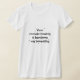 The material is a great quality that is hard to find with most tee shirts. Fabric was not see-through or thin at all, but was also very soft and comfortable. The shirt description states that it runs a little small, so I sized up one size for a perfect fit! I would definitely buy this type of tee shirt again because I love the fit and high quality fabric that I cannot find anywhere else. The printing was perfect and just as pictured. Loved the cute quote and really enjoy the tee in both the quality and design. I love quirky typography designs and funny quotes and I am extremely pleased with the overall quality and value I get at Zazzle!