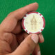 Here, a knight raises his sword in salute. On the reverse, the tower that holds his fair love. Meant to evoke the sketches of the great artists of the Renaissance, this playing token can be used for checkers, nine-mans-morris, a thank-you gift, or, of course, playing poker. Alter the colors of the rims to have two opposing sets, or use in conjunction with the Asian Inspired Playing Token.