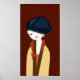 Girl with blonde hair wearing a blue beret and a fox inspired jacket Tones of autumn red and russet Poster art created on computer, simple neat and fashionable