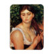 Renoir The Braid magnet. Oil painting on canvas from 1884-86. This beautiful painting was completed during Renoir’s rejection of impressionism. The Braid (Suzanne Valadon) depicts a pretty young woman in a low cut dress braiding her long dark hair. The girl lowers her dark eyes demurely away from the viewer. In the background one can make out the green leaves of a nearby bush. A great gift for fans of Renoir, French art, and beautiful portrait painting.
