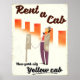 Rent a Cab! NYC Yellow cab poster of a vintage style business man making a telephone call to order a taxi cab!