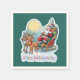 Farbenfrohe Weihnachtlandschaft, auf der der Weihnachtsmann mit seinem Rentierschlitten, die Geschenke verteilt. Rudi "the rednose rendeer" ist mit dabei!