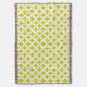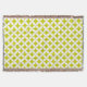 A repeat circular quarters cut out style patterned throw in lime green and white, by Sarah Trett. Would look great in a bedroom, lounge room.