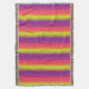 A repeat three color bright dogtooth stripe patterned throw in lime green, purple and pink, by Sarah Trett. Would look great in a bedroom, lounge room.