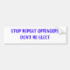 Durable vinyl bumper sticker, 3" x 11" "STOP REPEAT OFFENDERS -- DON'T RE-ELECT"