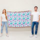 Repeat pattern teddy bear flower pink aqua throw blanket