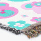 A repeat teddy bear faces and flowers graphic patterned throw in pink, aqua and white, original pattern design by Sarah Trett. Would look great in a girls bedroom or in a playroom.