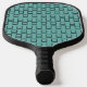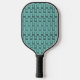 This pickleball paddle has a mid-century modern design of squares with a line and a line of circles, all black, repeating across the design on a field of seafoam. If you like the design but prefer different colors, message me.
